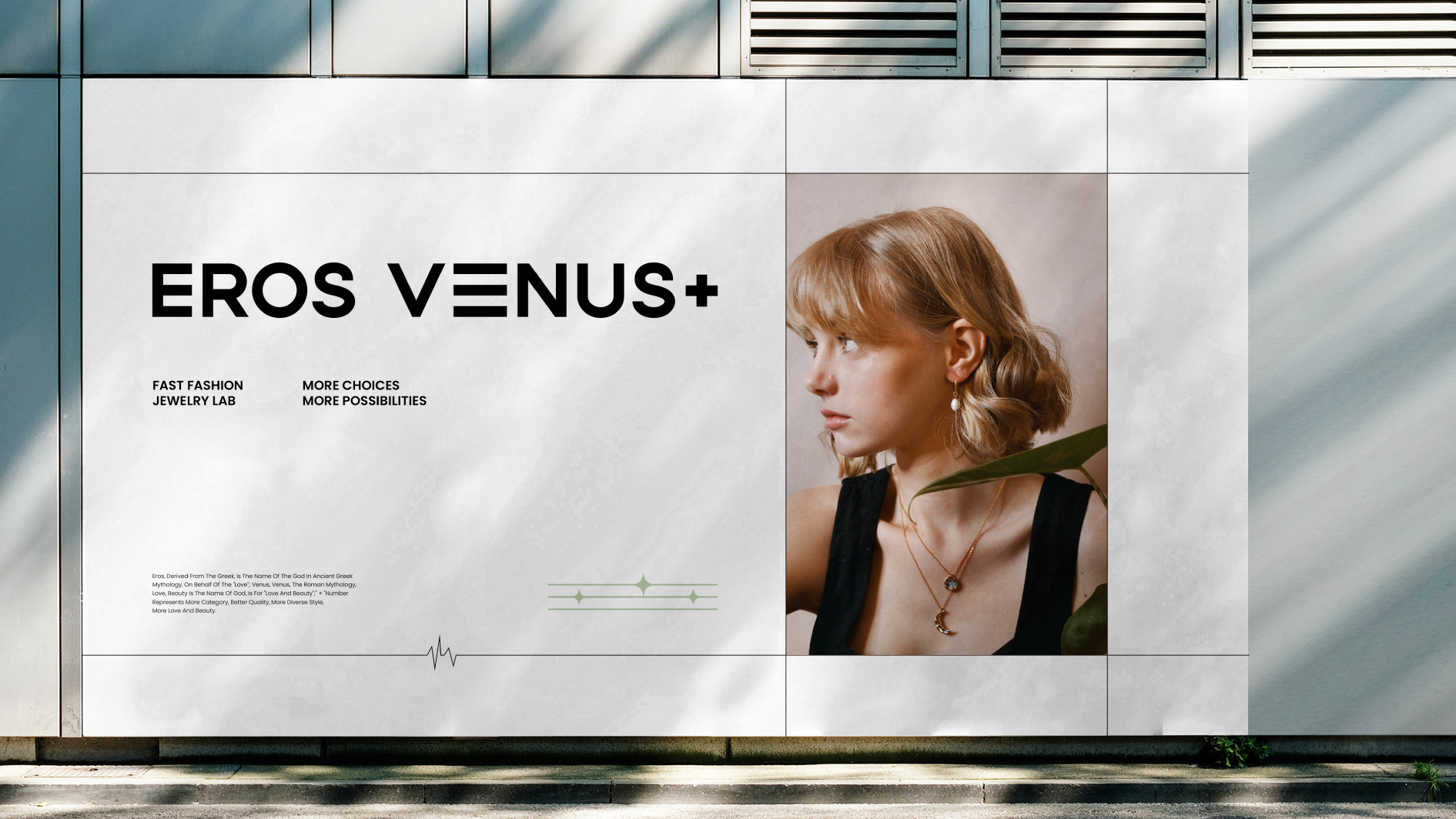 EROS VENUS+是一家欧美快时尚饰品品牌,小李白在对当地饰品市场进行深入研究和分析后,我们为其量身打造了“快时尚饰品研究所”的战略定位,并根据品牌定位,通过极具个性、年轻和前卫的品牌文化、视觉形象和空间体系,帮助其在市场上建立了全新的品牌认知,并助其取得了显著的成绩。