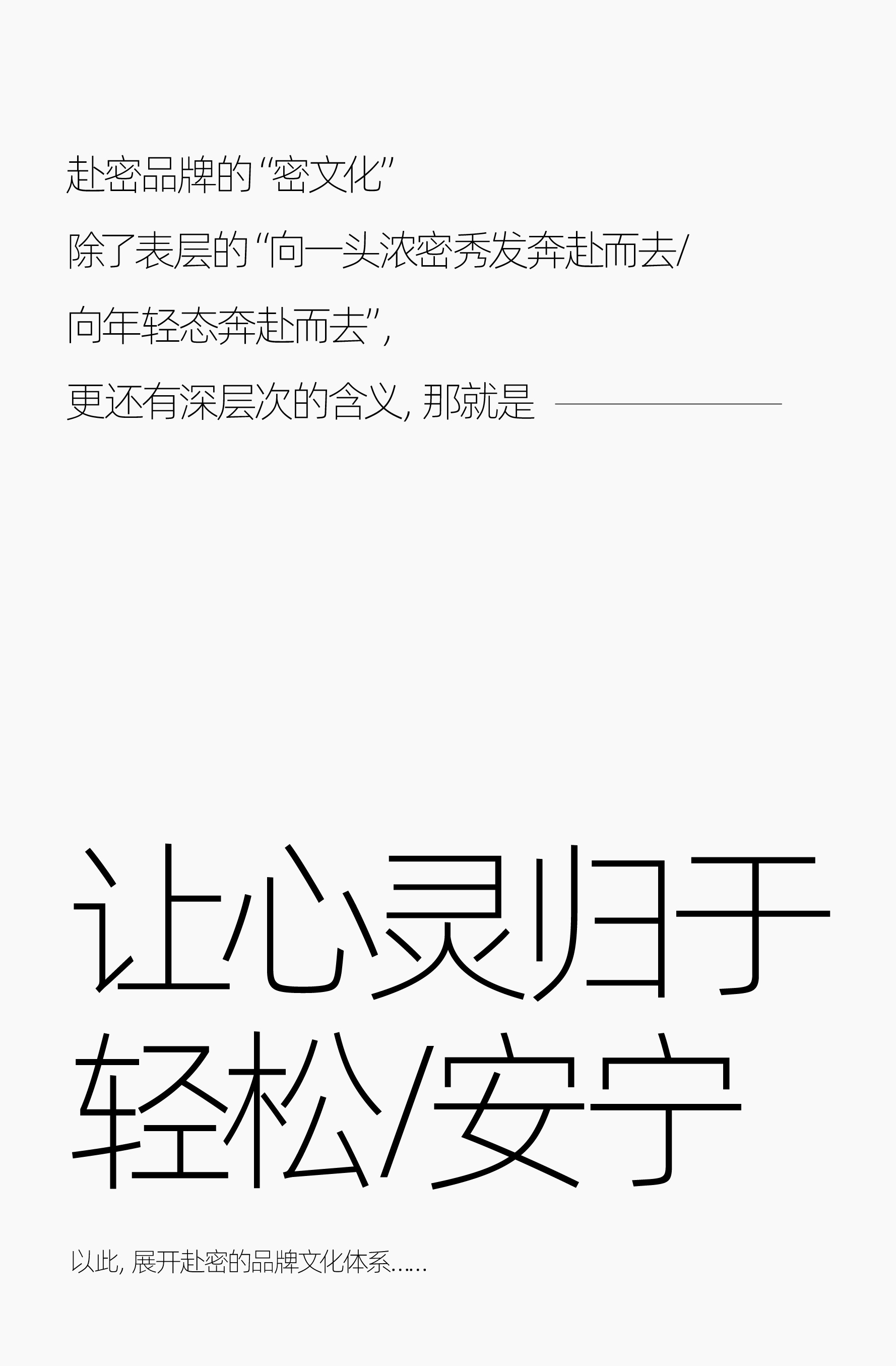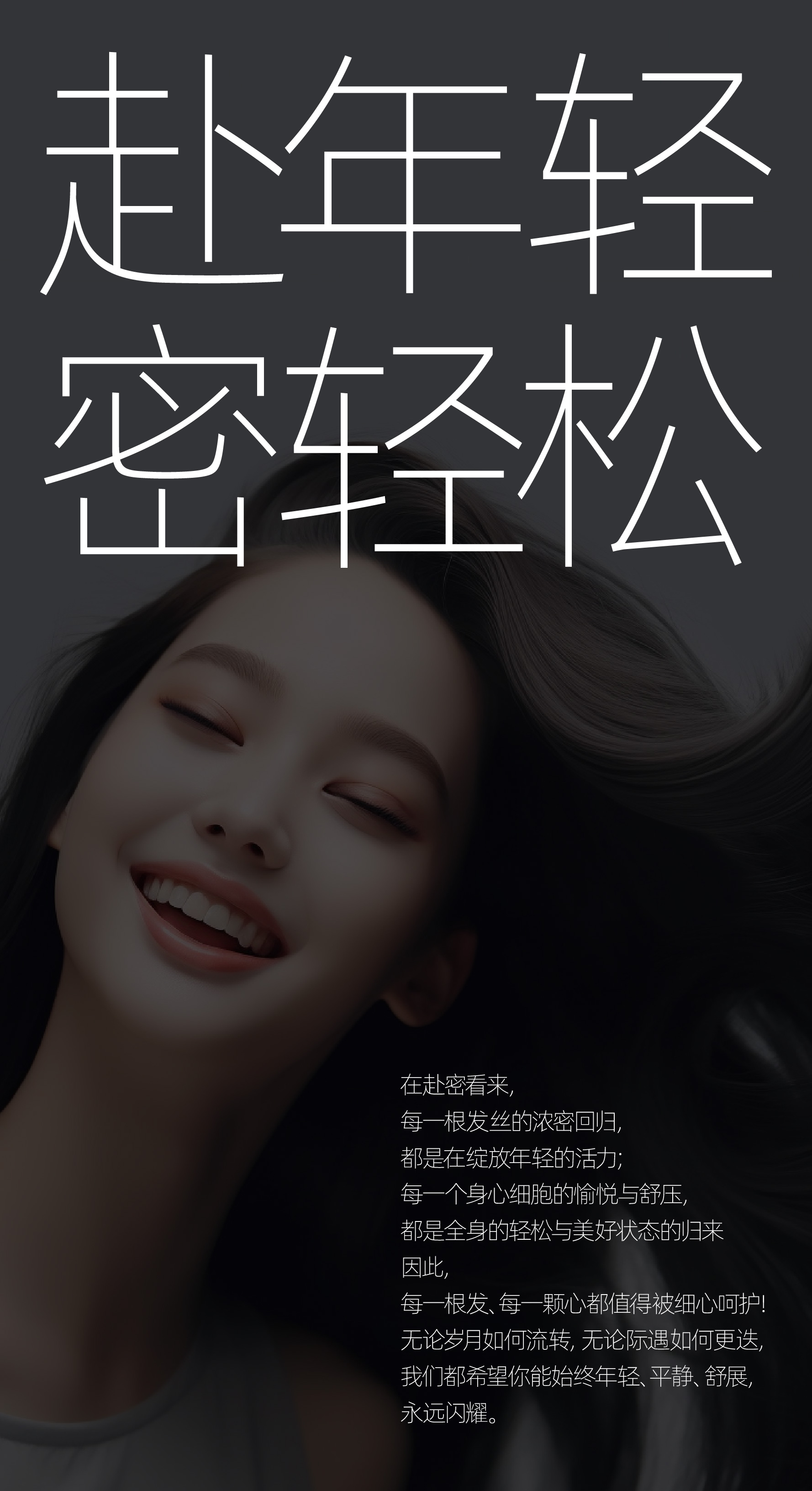 赴密,致力于密发养发、减压SPA、头皮御龄、防白养黑、健发赋活、头部微环境调养等业务,是一个倡导“回血式养发,自愈式生活”之理念的头发养护品牌。在琐碎纷繁的现代都市里,赴密始终坚守着为头皮毛发健康及心灵舒压贡献一份力量的初心,深深理解头皮毛发之健康与心灵之安然的紧密联系,因此,努力使每一次服务,都能为毛发的焕然生机提供帮助,为心灵的深度舒缓提供支持。