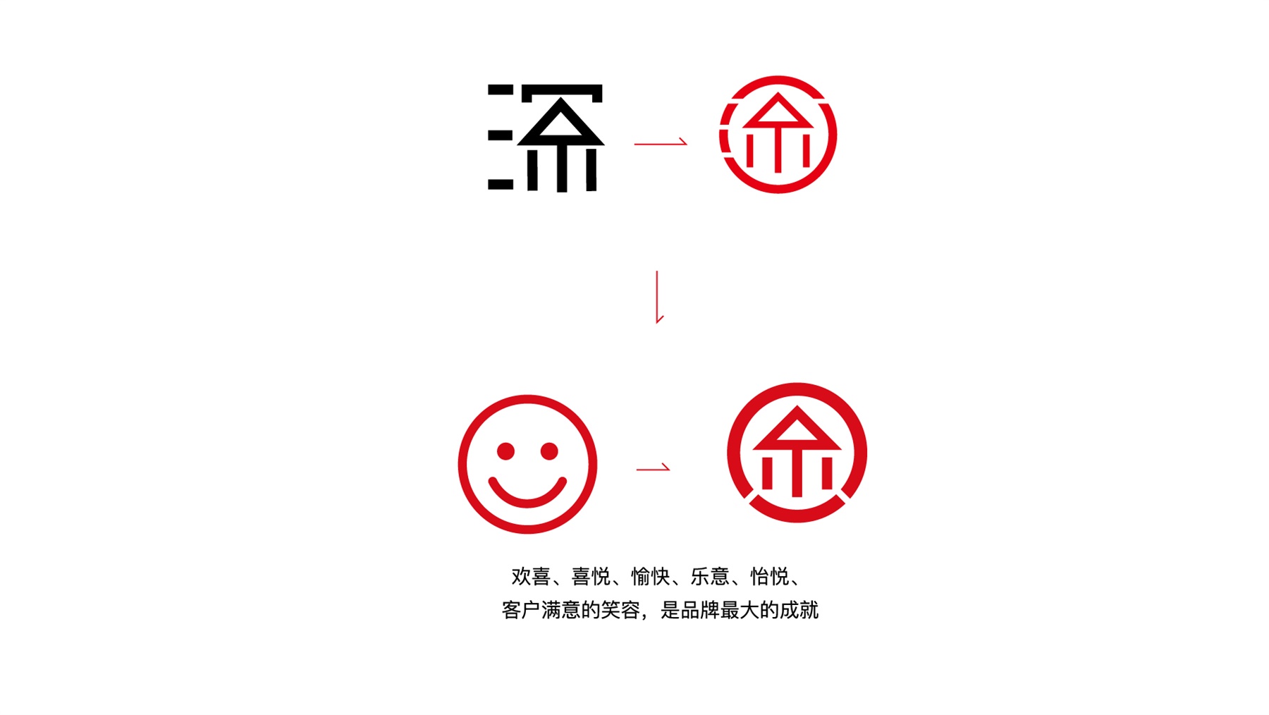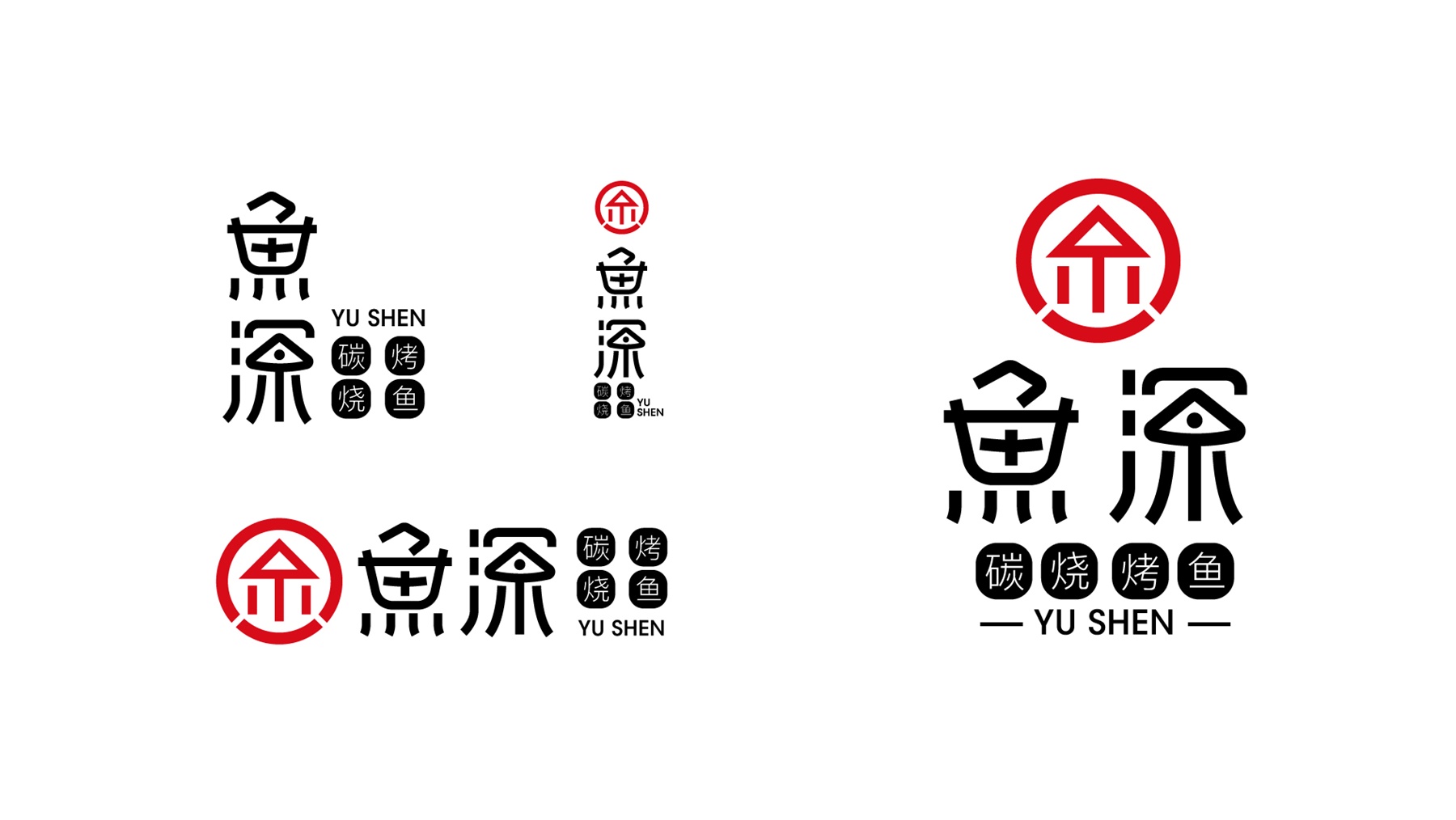 鱼深烤鱼,专业的炭烧烤鱼品牌。鱼深希望带给大家欢喜、愉快、乐意,让每一个进店的人都能收获好心情。因此在创意上把品牌的“鱼”元素和代表欢乐的“笑脸”元素作为LOGO的主元素,去探索欢乐烤鱼的奥义。通红的炭火能让鲜活的鱼产生美拉德反应,外焦里嫩,因此设计的主色调采用了红色,热情洋溢之余,给人带来更开胃的食欲。通过整个品牌的设计,让顾客在了解鱼深烤鱼时,便能从热情洋溢的设计里,感受到欢乐愉悦的用餐心情。