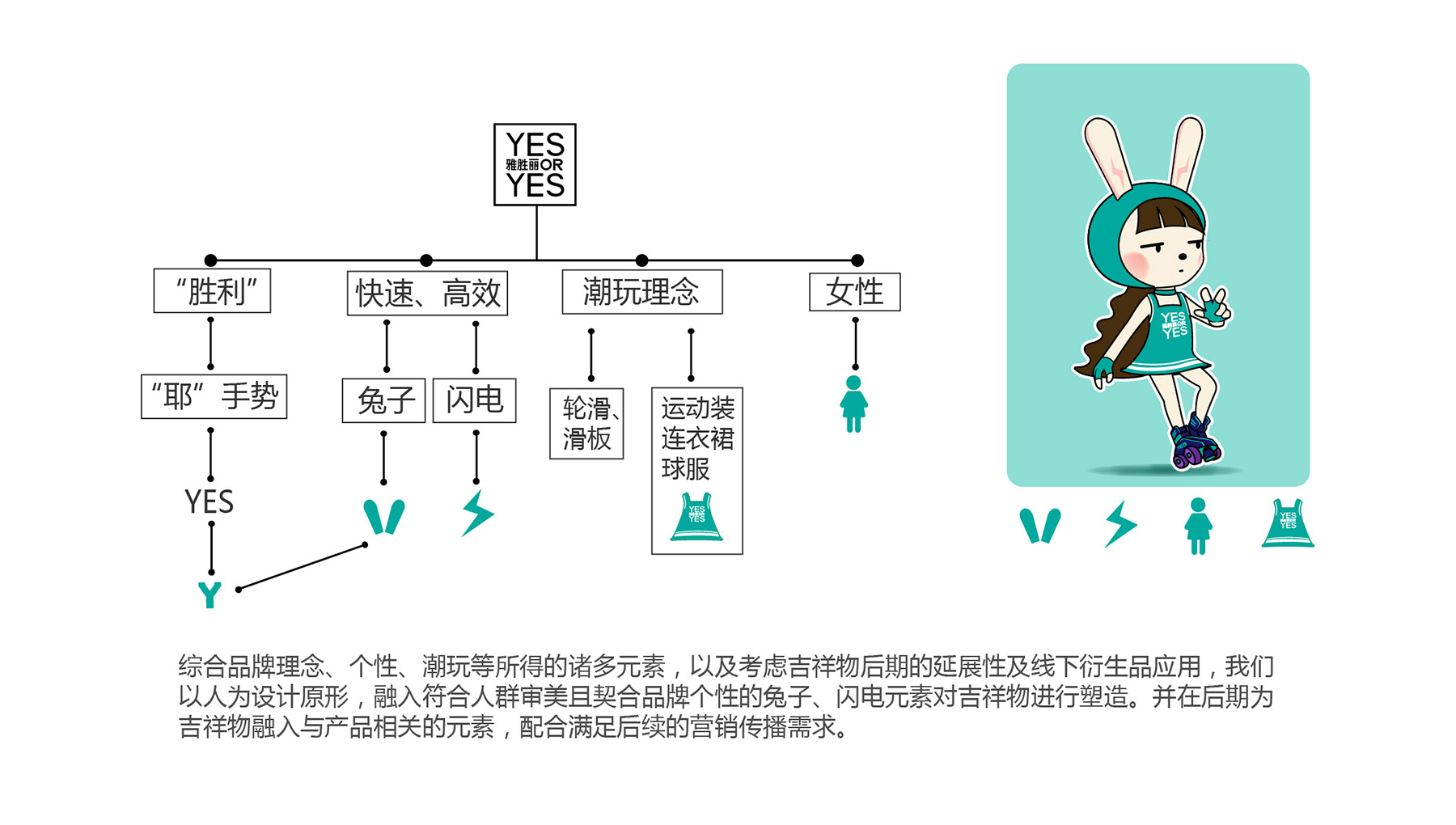 雅胜丽,是一个专注于美妆工具领域的品牌,缺少品牌特点,导致无法让消费者记住,因此与小李白的合作,进行品牌IP形象设计。我们综合雅胜丽品牌理念、个性、潮玩等所得的诸多元素,以及考虑吉祥物后期的延展性及线下衍生品应用,我们以人为设计原形,融入符合人群审美且契合品牌个性的兔子、闪电元素对吉祥物进行塑造。并在后期为吉祥物融入与产品相关的元素,配合满足后续的营销传播需求。