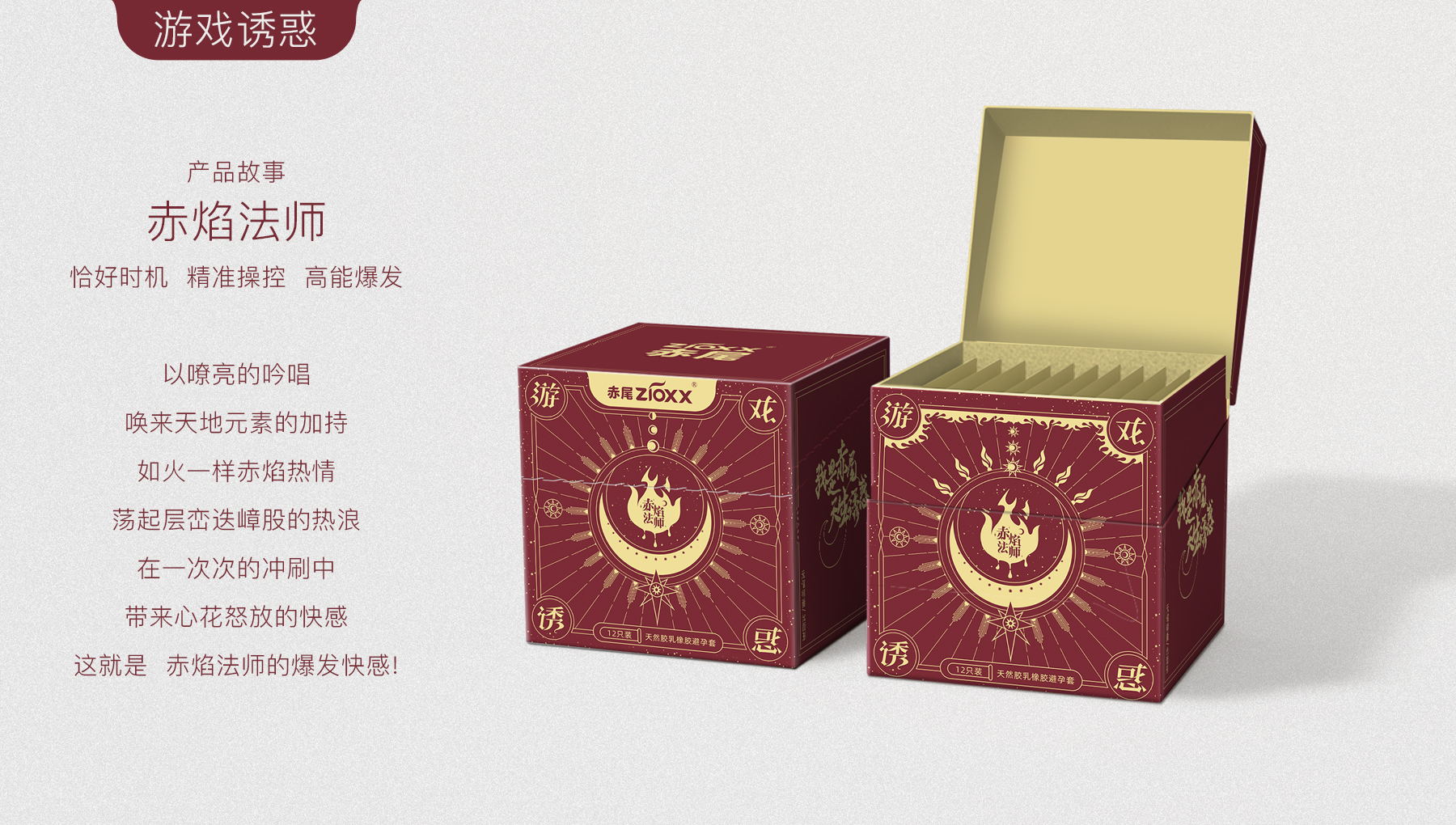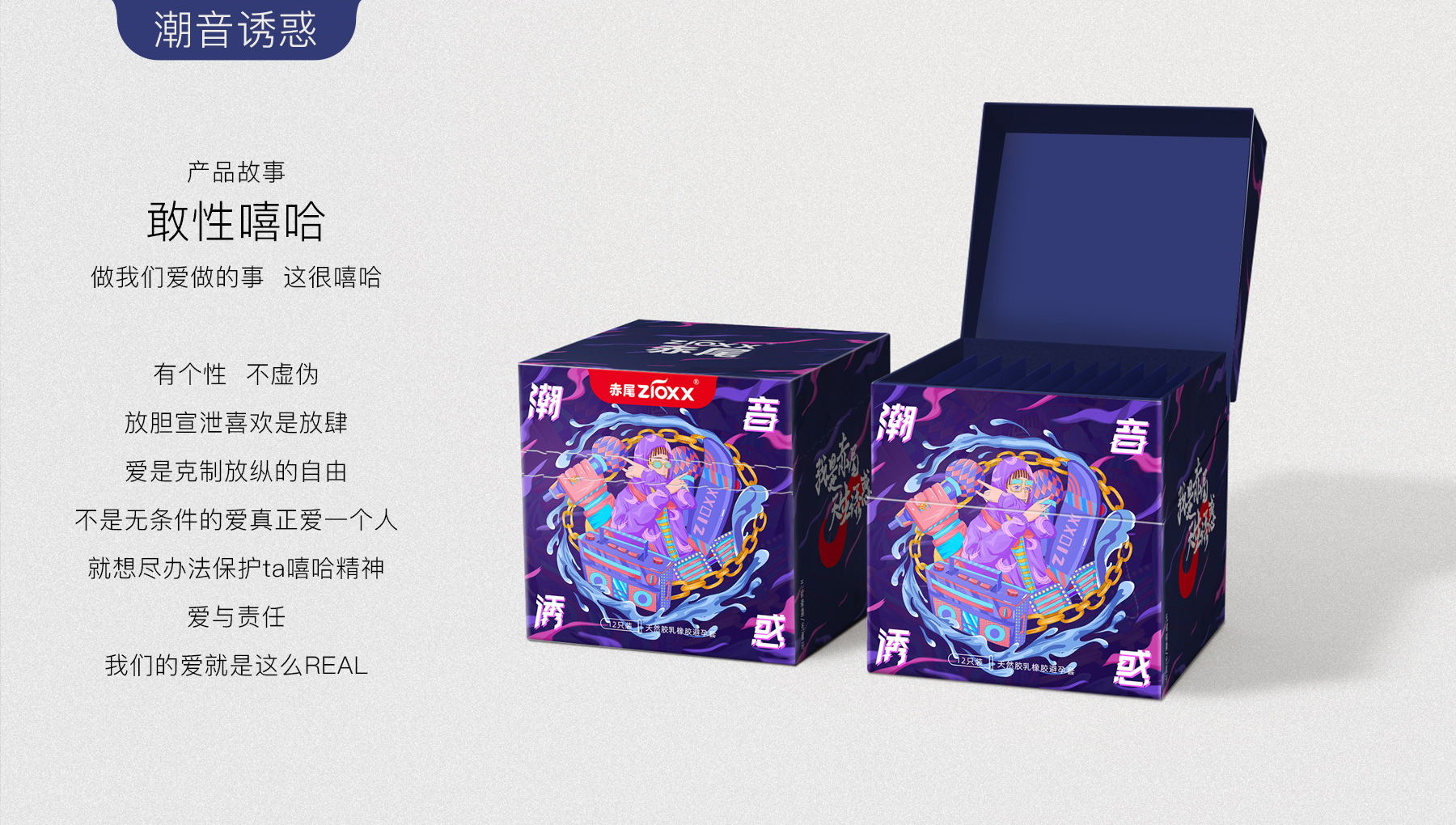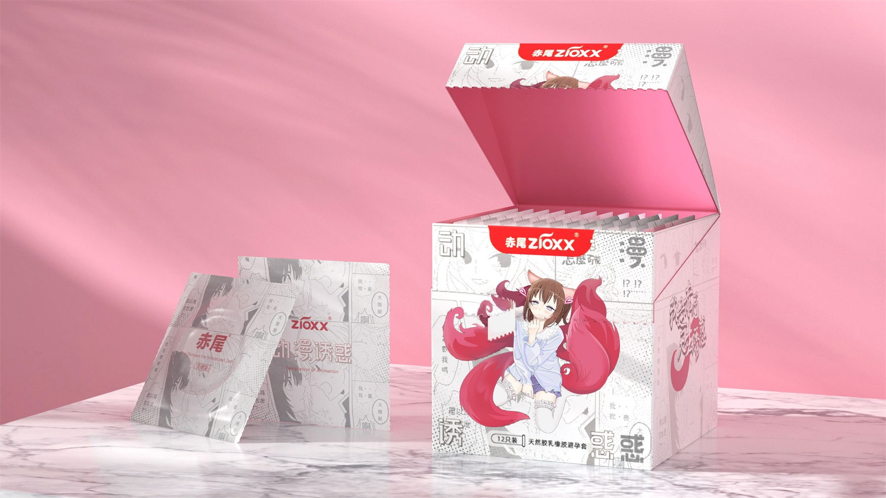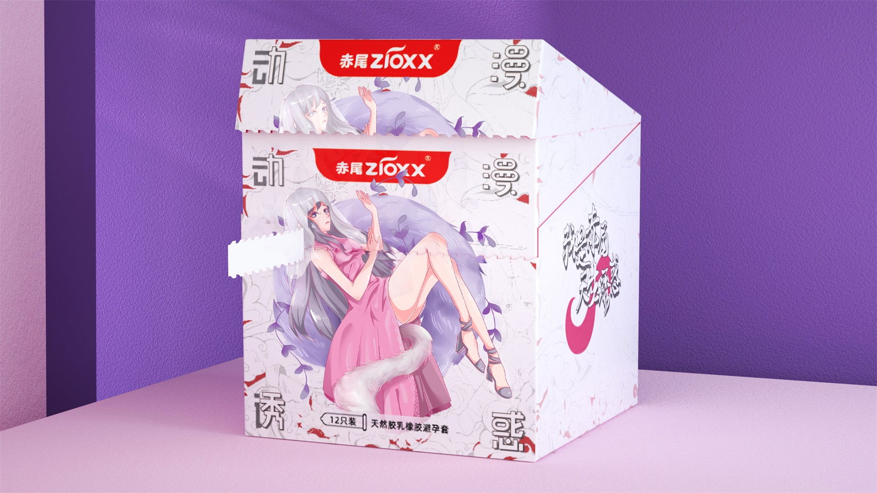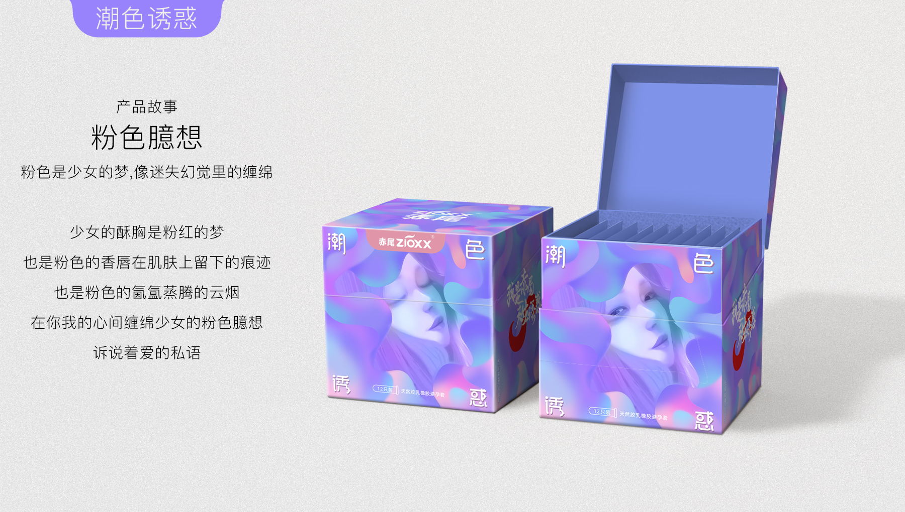 我是赤尾,天生诱惑,口语化的第一人称介绍,直接拟人化,用赤狐来代替人类性爱的魅力,ip人物区别于大多数安全套品牌的男性定位,主要女性定位,因美而爱,因爱而选。消费者出发,内容驱动,感性消费。根据市场消费升级的需求,小李白对“赤尾“进行品牌升级,重新升级赤尾VI、EVI、产品包装、赤尾IP形象等视觉输出。