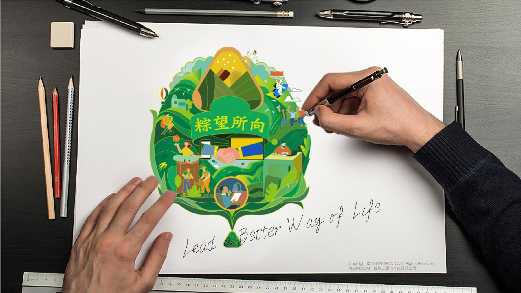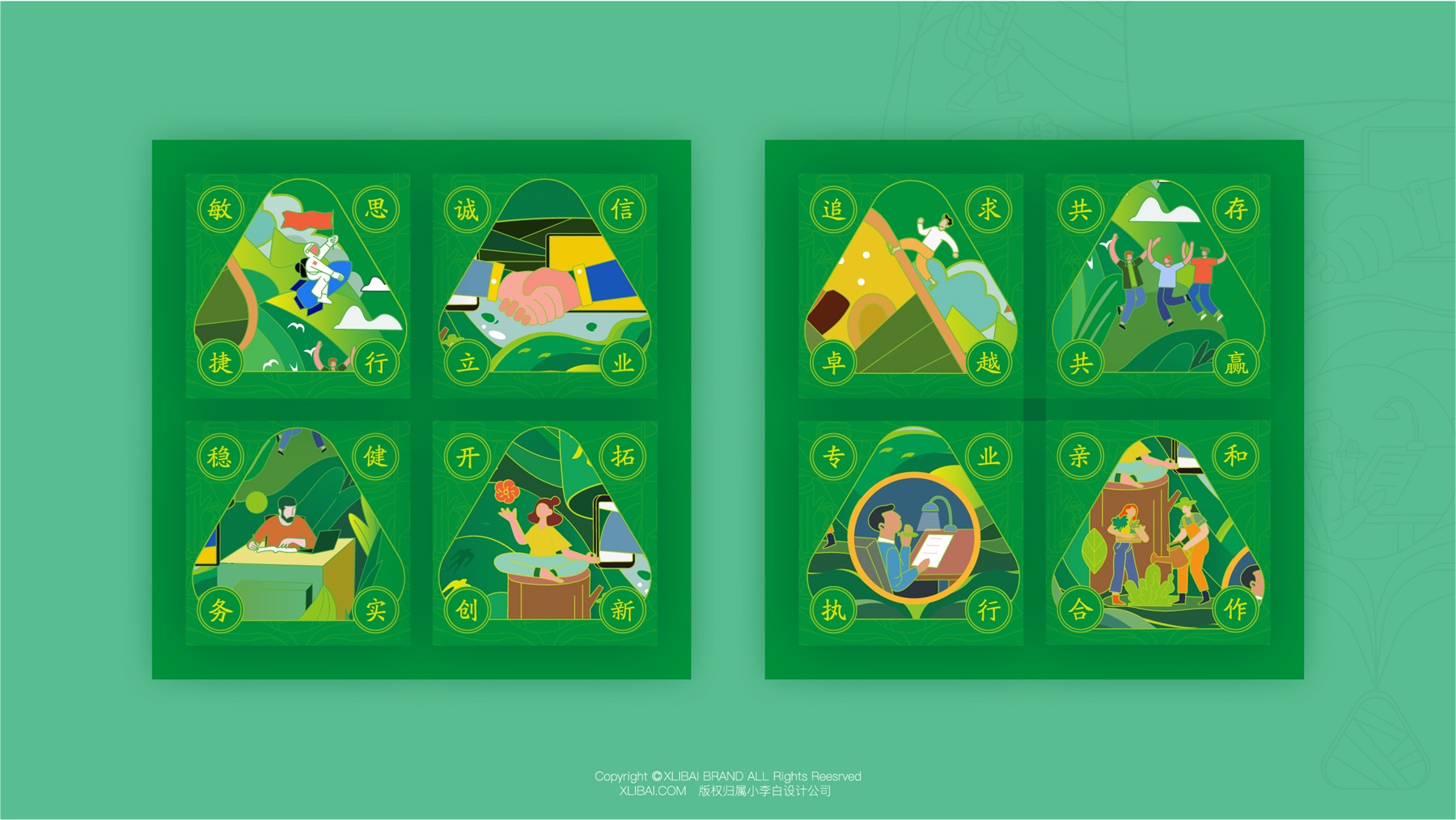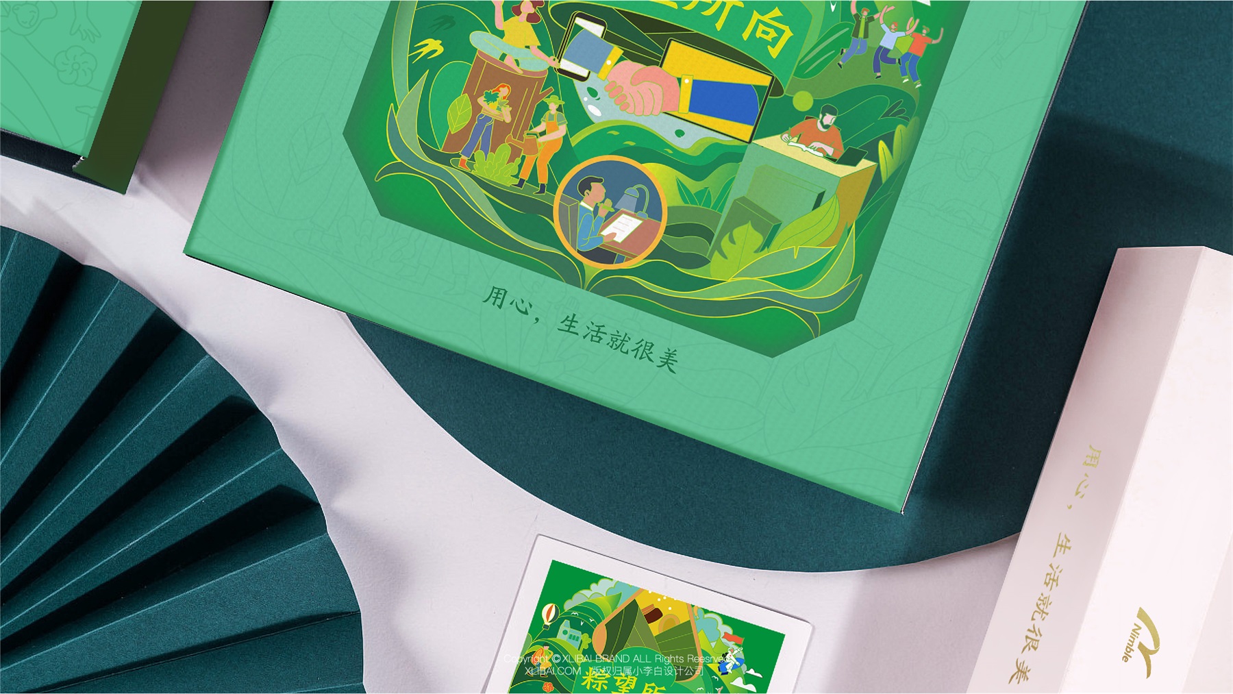 敏捷集团创立于1993年,1998年正式进入民生住宅开发领域,历经20余年的稳健发展,现已成为一家涵盖民生地产、建筑工程、生活服务、城市更新、酒店及商业运营、文旅开发、教育等多元化业务的全国知名综合性企业集团。这次合作的粽子礼盒,是敏捷集团为员工定制的端午节礼盒。我们在设计上,采用手绘图案的设计,丰富视觉语言,使视觉更具吸引力。用传统的“粽叶绿”表达粽子的传统美味,也凸显了天然的味道又绿色环保。此款粽子礼盒包装设计,使美味变得温暖而深刻。