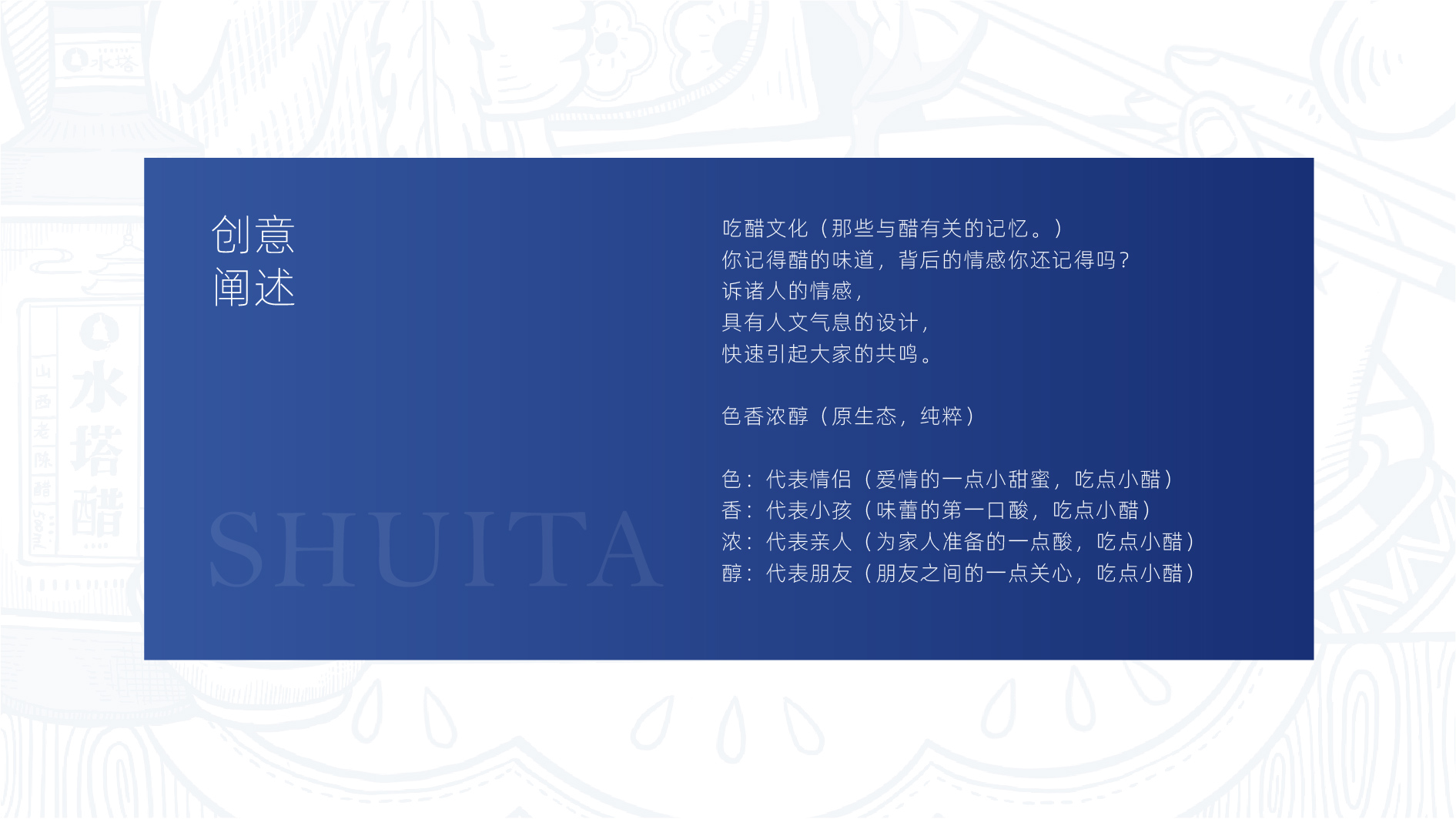 山西水塔醋业股份有限公司是目前国内大型的老陈醋生产企业。本次我们接到客户为水塔品牌设计礼品系列包装的需求,在体现水塔品牌的同时,设计大气、精致、人性化的瓶贴和包装设计,也要考虑年份系列的区分等,并且还要考虑现代消费者的审美倾向,设计符合时代感的包装设计,我们基于此需求完成了次项目。