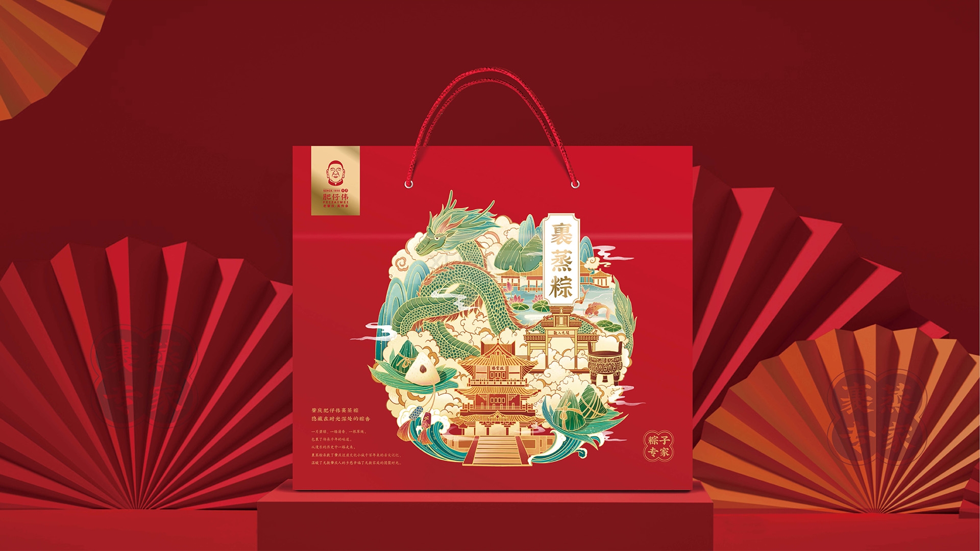 传统与时尚的碰撞永远是设计领域经典的命题,裹蒸粽作为传统美食,想要以时尚的方式走进人们的视野,势必要具有自己独特的风格,与此同时品牌的文化也要在其中有所呈现。小李白对肥仔伟品牌文化进行深入了解后,尝试把品牌文化与传统文化相结合,为终端消费者呈现出一款与众不同的裹蒸粽新包装。