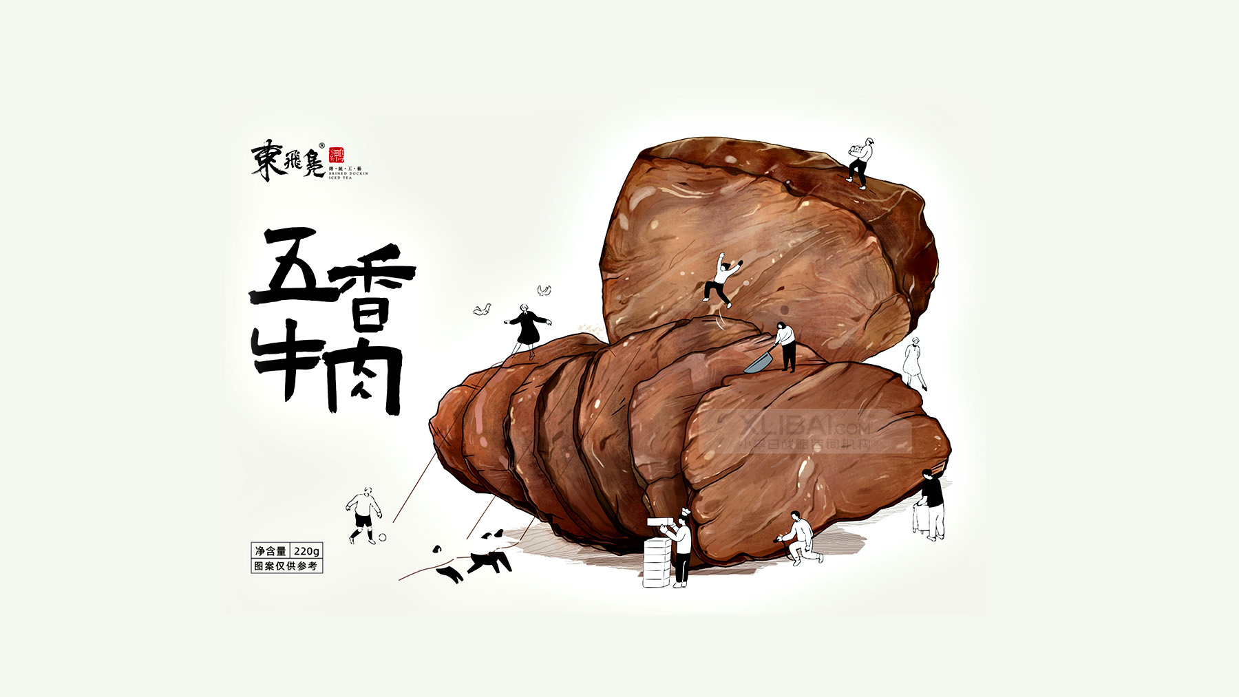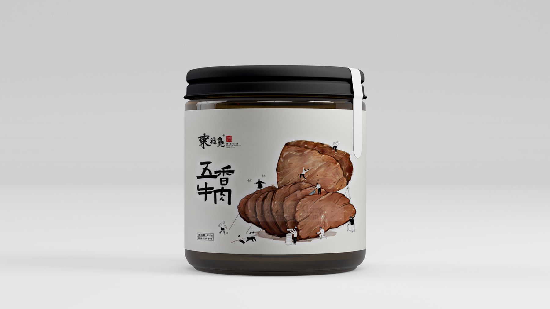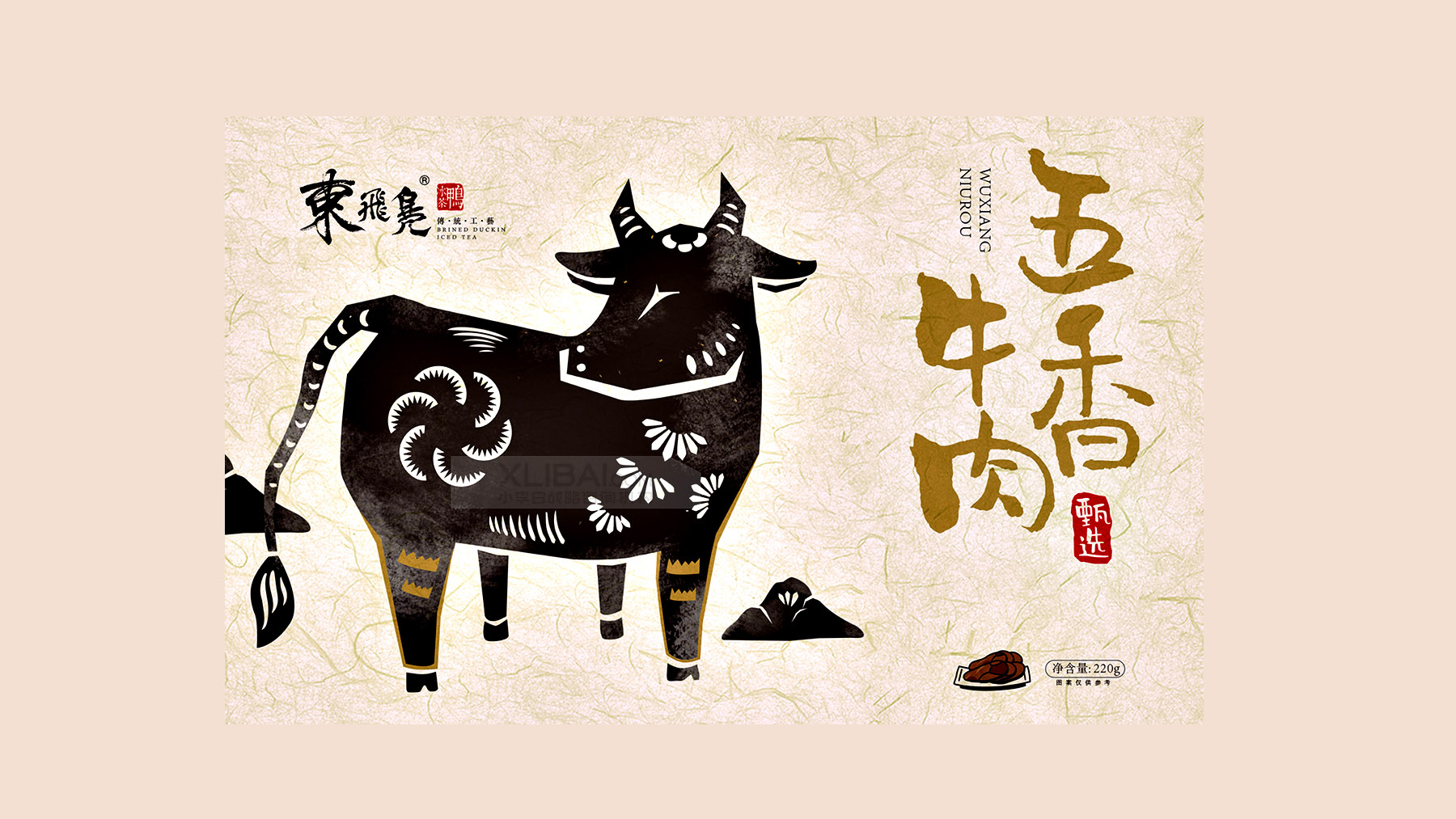冰茶鸭是东飞凫公司旗下的卤味品牌,由五星级酒店大厨黄嘉帆首创,历经10多年积累,冰茶鸭从小众美食,变成广为传播的大众美味。五香牛肉是冰茶鸭推出的新品,需要进行全新包装设计。