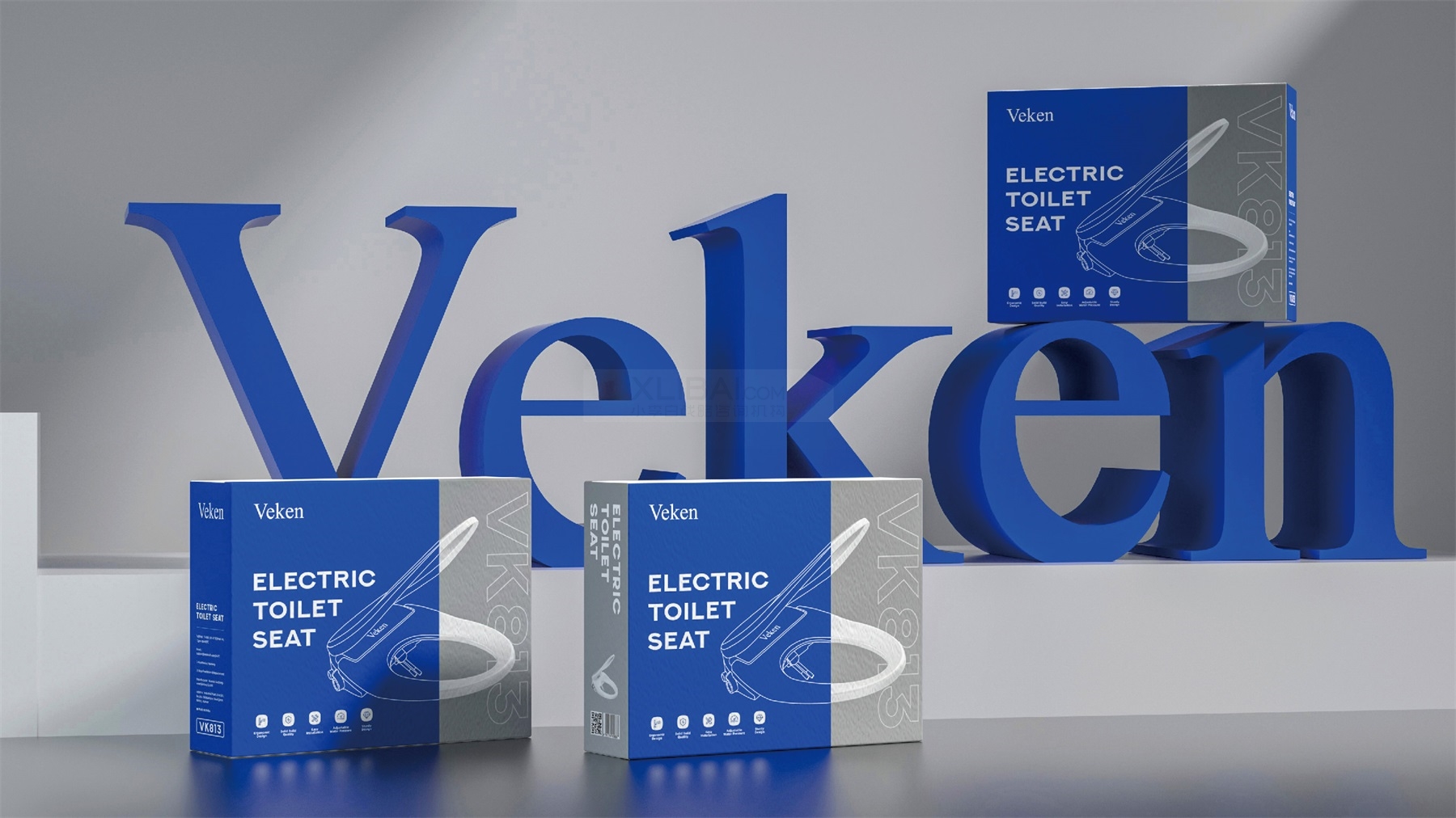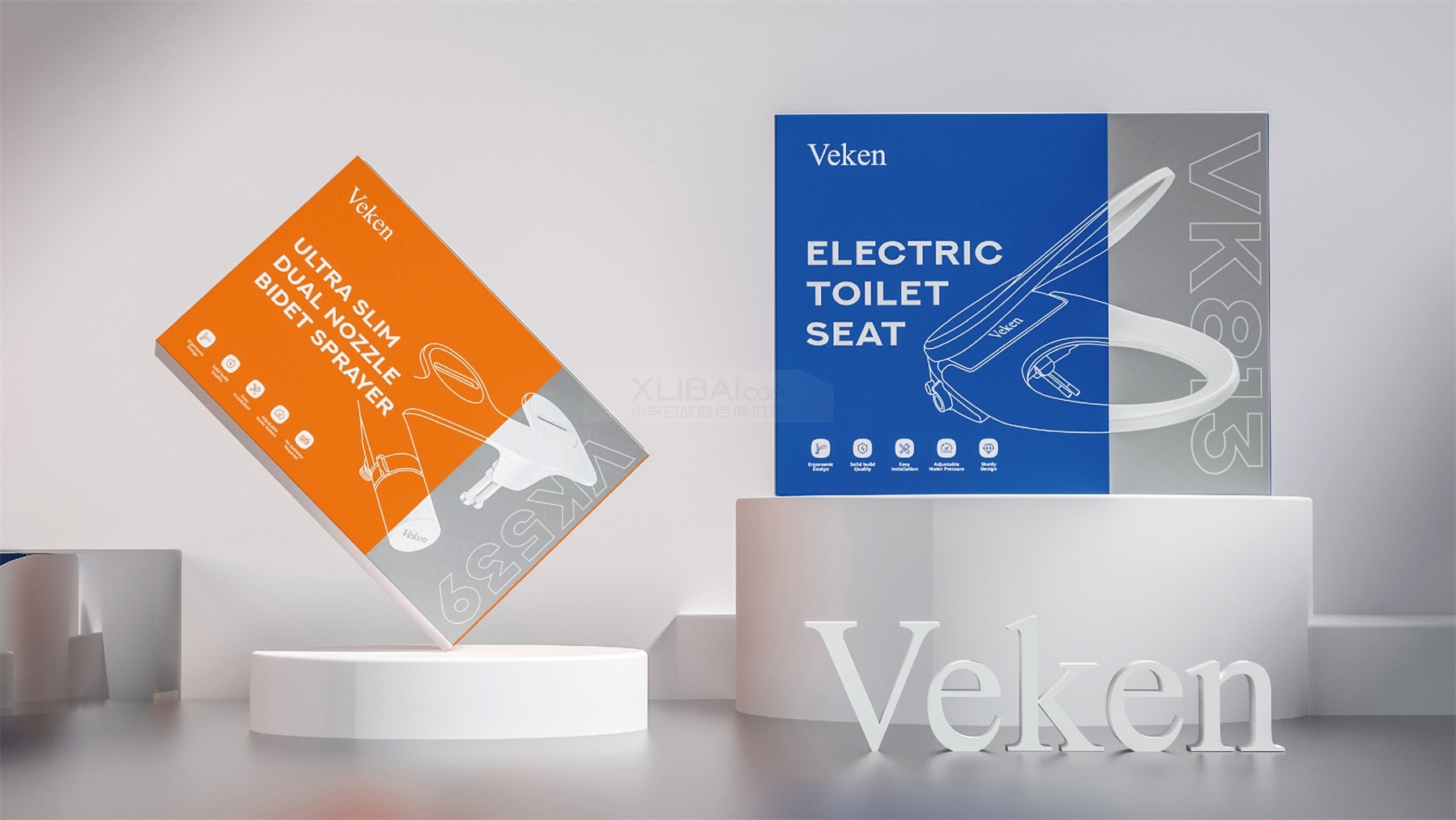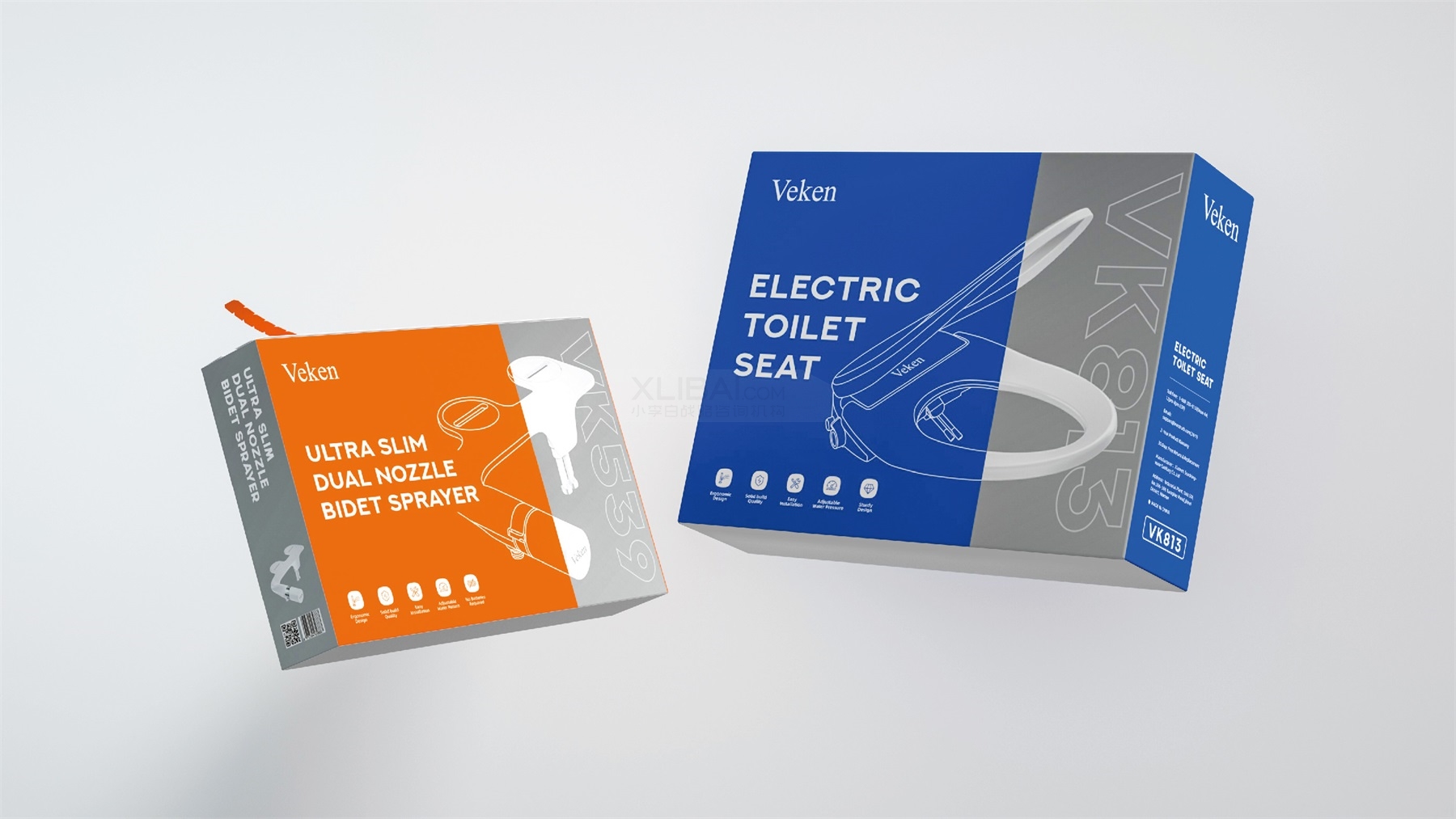 为了提升产品竞争力,Veken希望对 Electric Toilet Seat智能马桶盖和Ultra- Slim Dual Nozzle Bidet Sprayer超薄净身盆进行包装升级。旧款包装已使用多年,系列感弱无法体现产品价值,因此小李白根据出口贸易渠道,结合国际化视野对产品包装进行了系统化的全面升级。