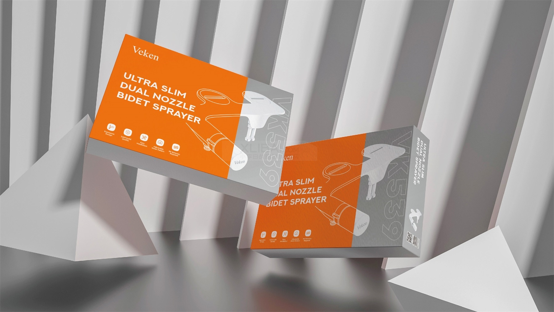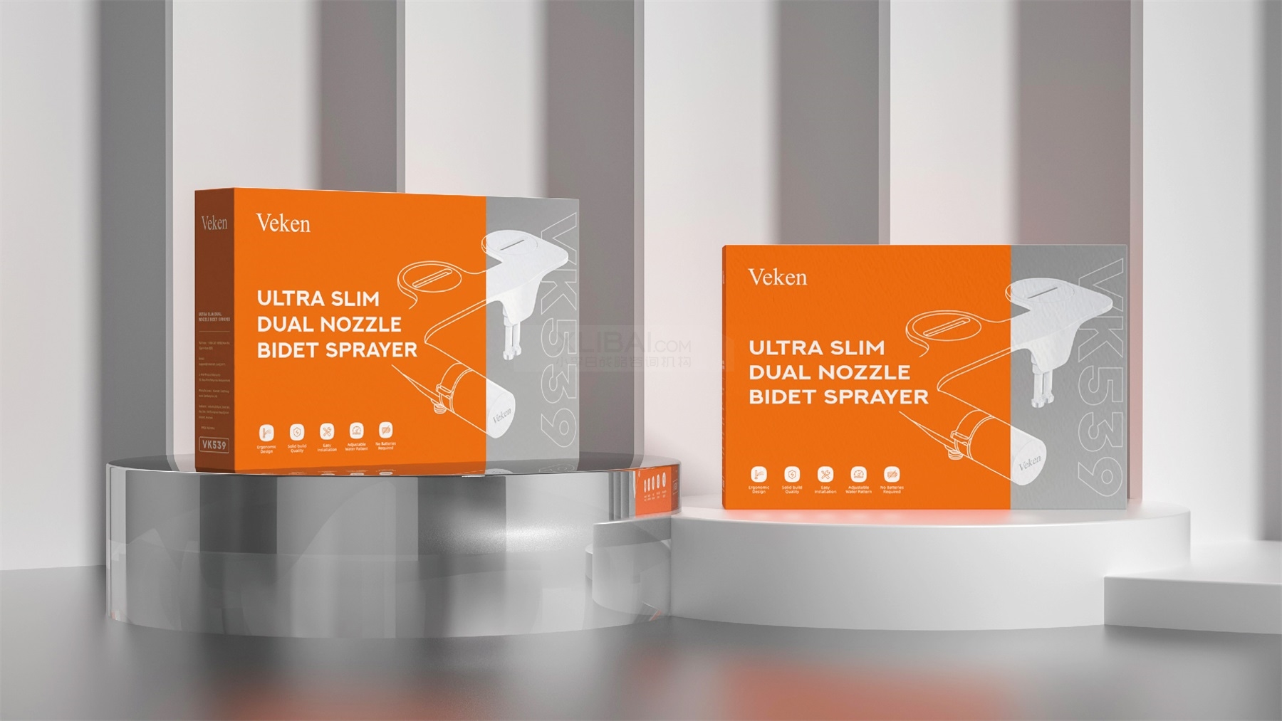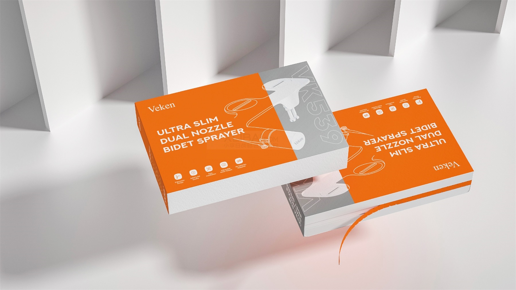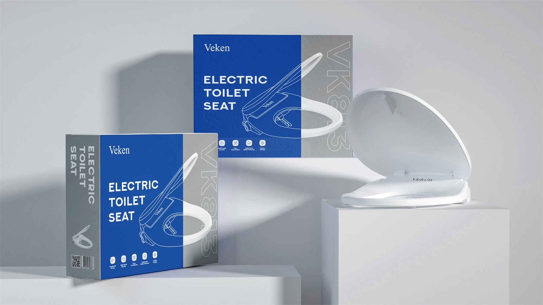 为了提升产品竞争力,Veken希望对 Electric Toilet Seat智能马桶盖和Ultra- Slim Dual Nozzle Bidet Sprayer超薄净身盆进行包装升级。旧款包装已使用多年,系列感弱无法体现产品价值,因此小李白根据出口贸易渠道,结合国际化视野对产品包装进行了系统化的全面升级。
