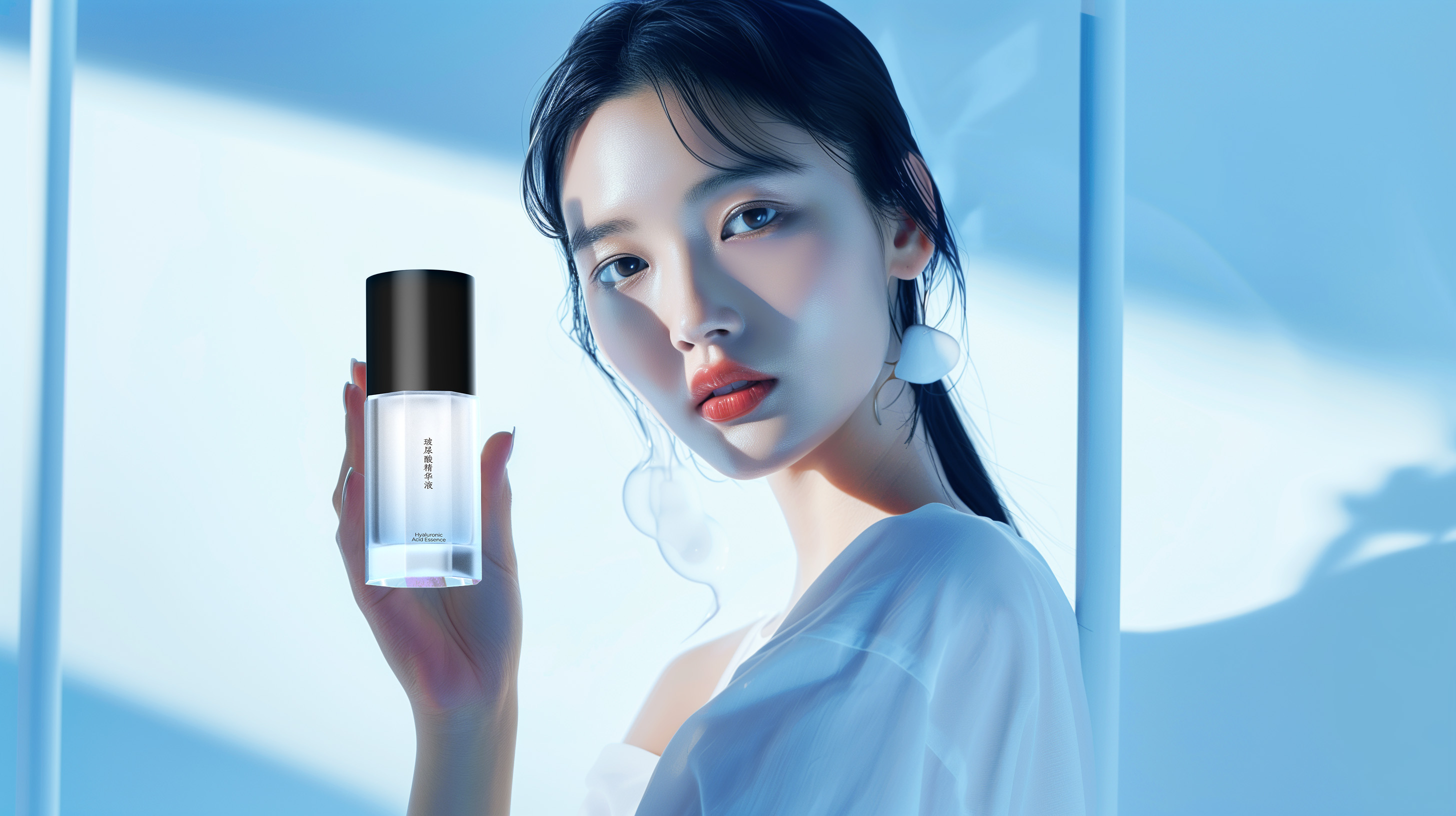 蓝白冰感:如玻尿酸精华、肽抗敏精华,传达清爽水润、镇静修复的感受;