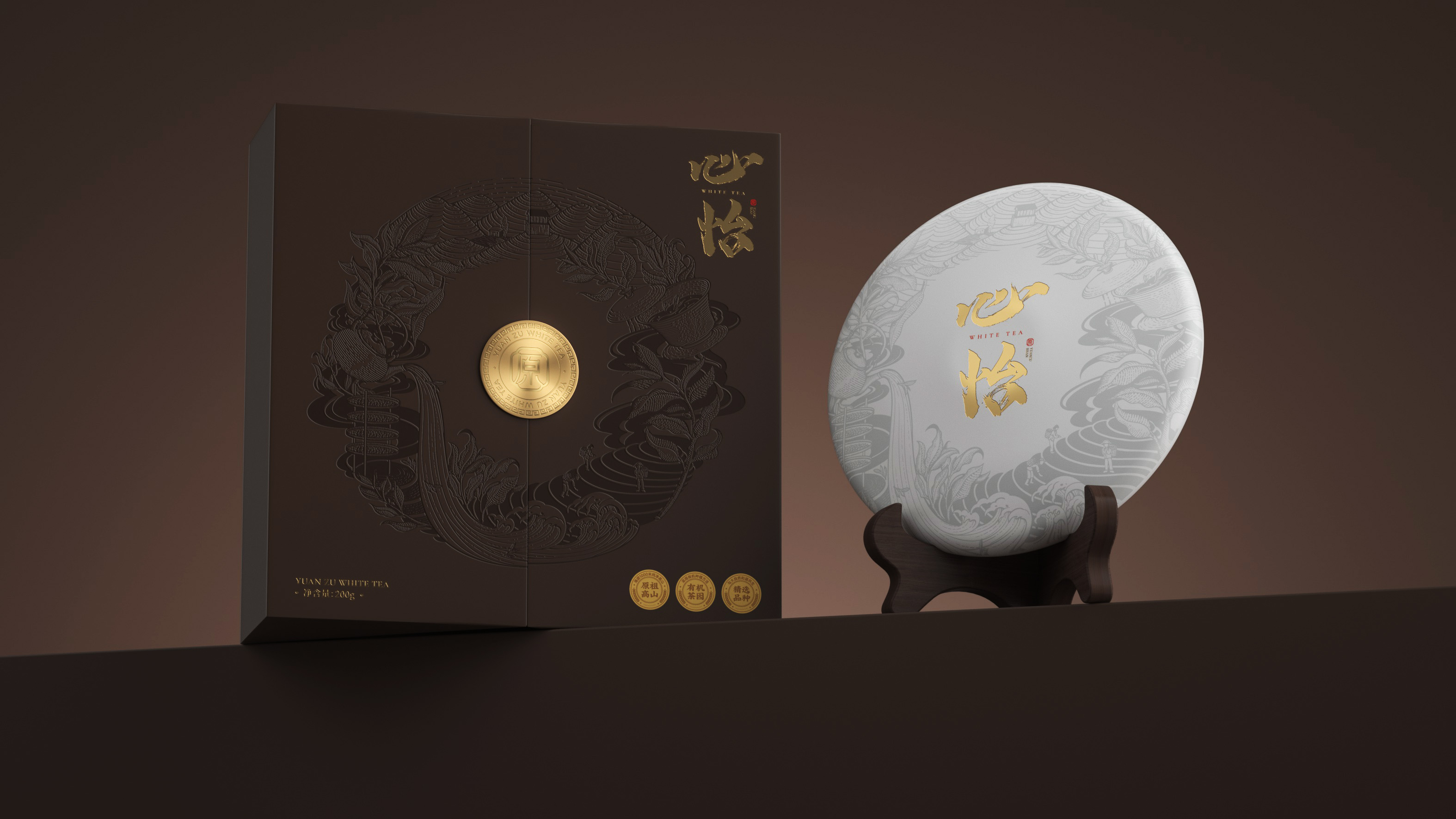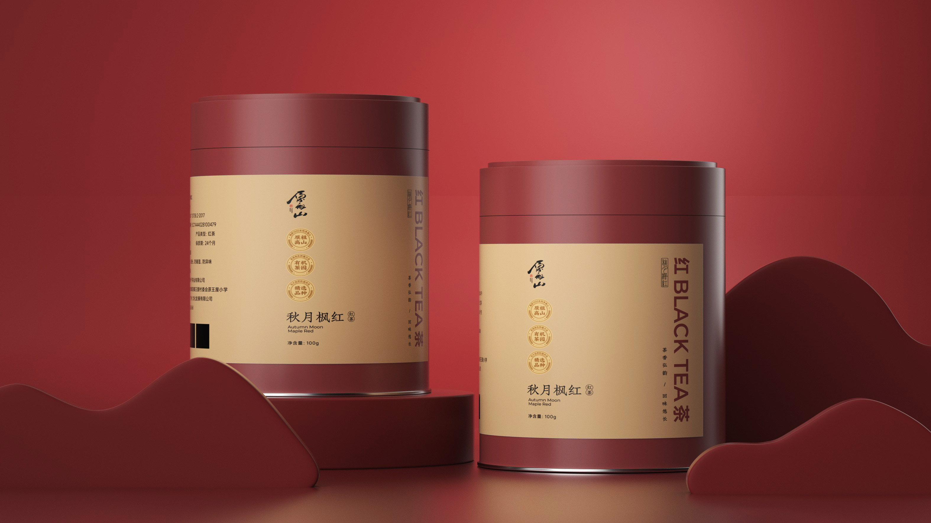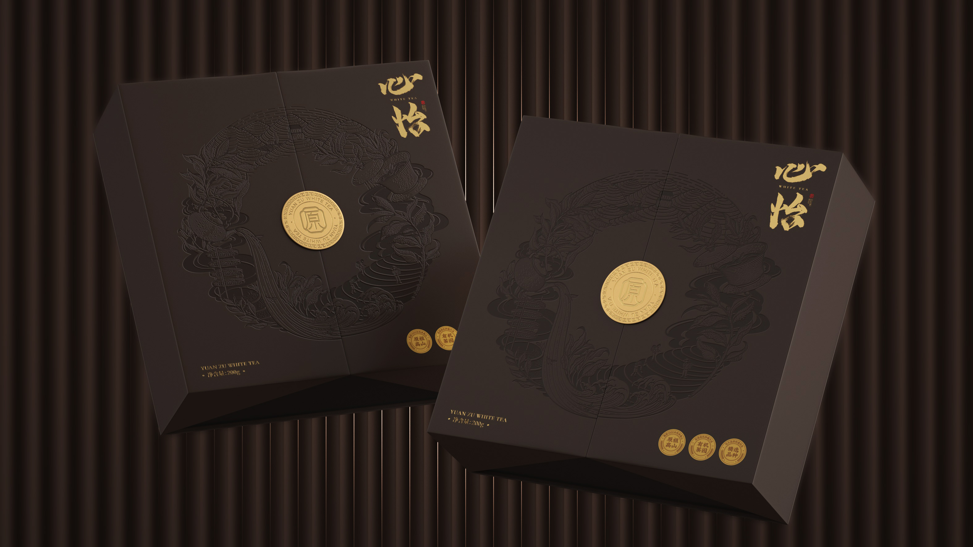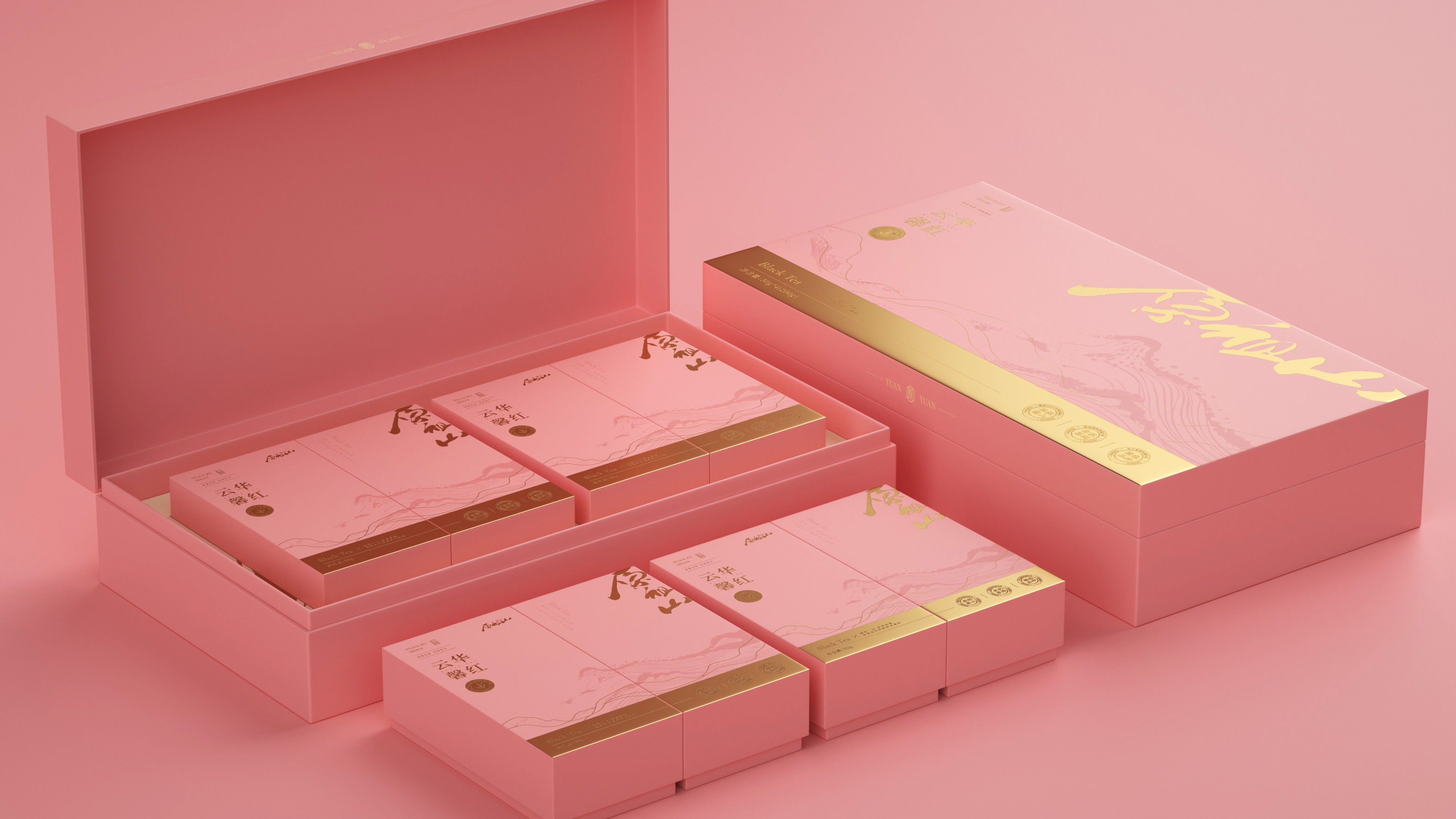原祖山系列茶叶包装以“源于山,自有道”为核心理念,整体视觉设计融合现代美学与东方意境,诠释品牌的自然纯粹与文化底蕴。各系列产品通过色彩区分茶类属性——黑金系体现白茶的雅贵,紫金系彰显红茶的高贵典雅,墨红与翠绿分别赋予红茶与绿茶更鲜明的品类记忆。