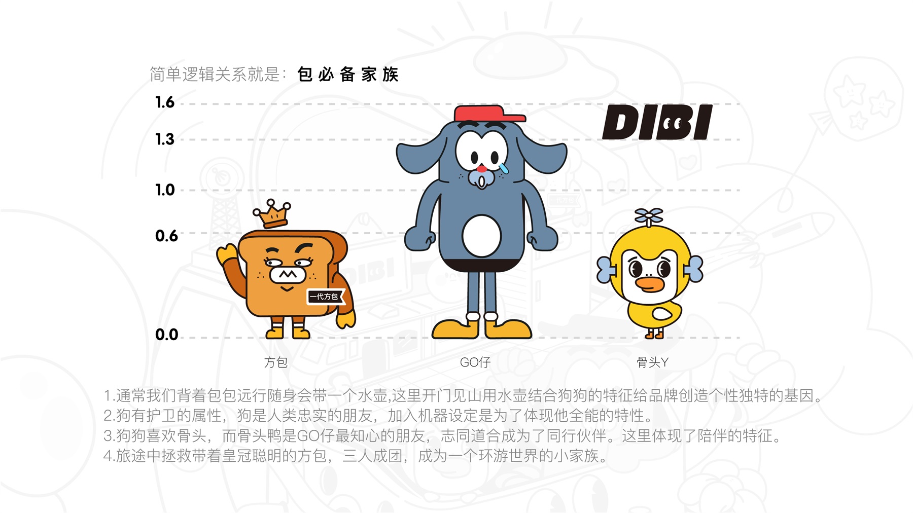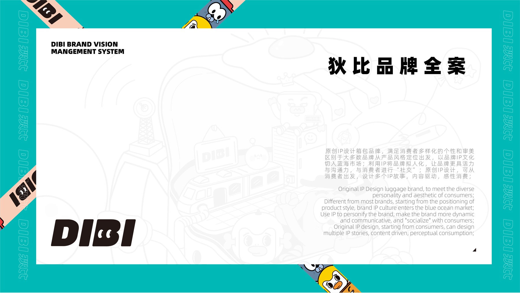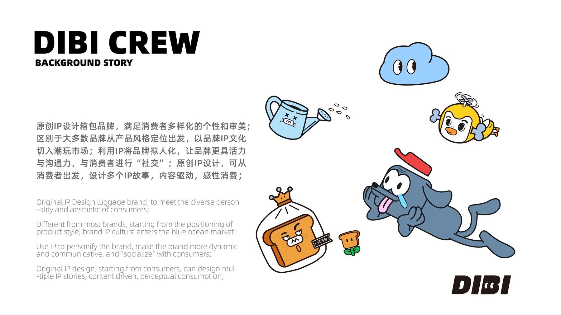 狄比,原创IP设计箱包品牌,满足消费者多样化的个性和审美;区别于大多数品牌从产品风格定位出发,以品牌IP文化切入潮玩市场;利用IP将品牌拟人化,让品牌更具活力与沟通力,与消费者进行“社交”;原创IP设计,可从消费者出发,设计多个IP故事,内容驱动,感性消费;