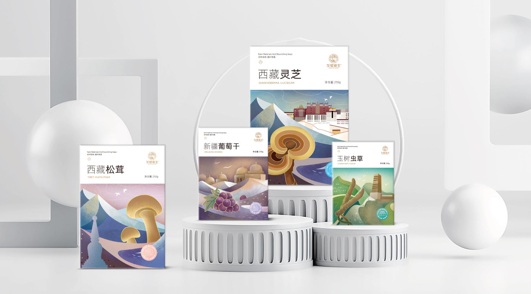 通过辅助色调结合VI设计中的地域icon设计,我们用插画设计的创作手法,对产品包装进行系统化的输出。