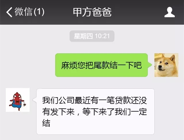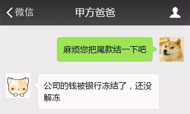 其实,这整件事都是孙坚为唐嫣新剧做宣传玩的创意。不过作为广告狗的扯姐,却想起了那些向甲方爸爸催款的光辉岁月。是谁,让你又爱又恨却又不离不弃?是谁,让你彻夜难眠却又甘之如饴?是谁,让你受尽委屈却又笑着原谅?是他是他就是他,我们亲爱的甲方爸爸。当你去找甲方爸爸要尾款时,熟读《拖款兵法》的甲方爸爸,总会给你一千个拖欠款的理由,顺便一首凉凉送给你。甲方爸爸拖欠款的各种奇葩理由: